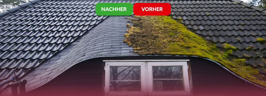 Moos und Algen entfernen: Moos speichert Feuchtigkeit und kann die Dachfläche beschädigen. Eine professionelle Reinigung sorgt für ein sauberes und langlebiges Dach.